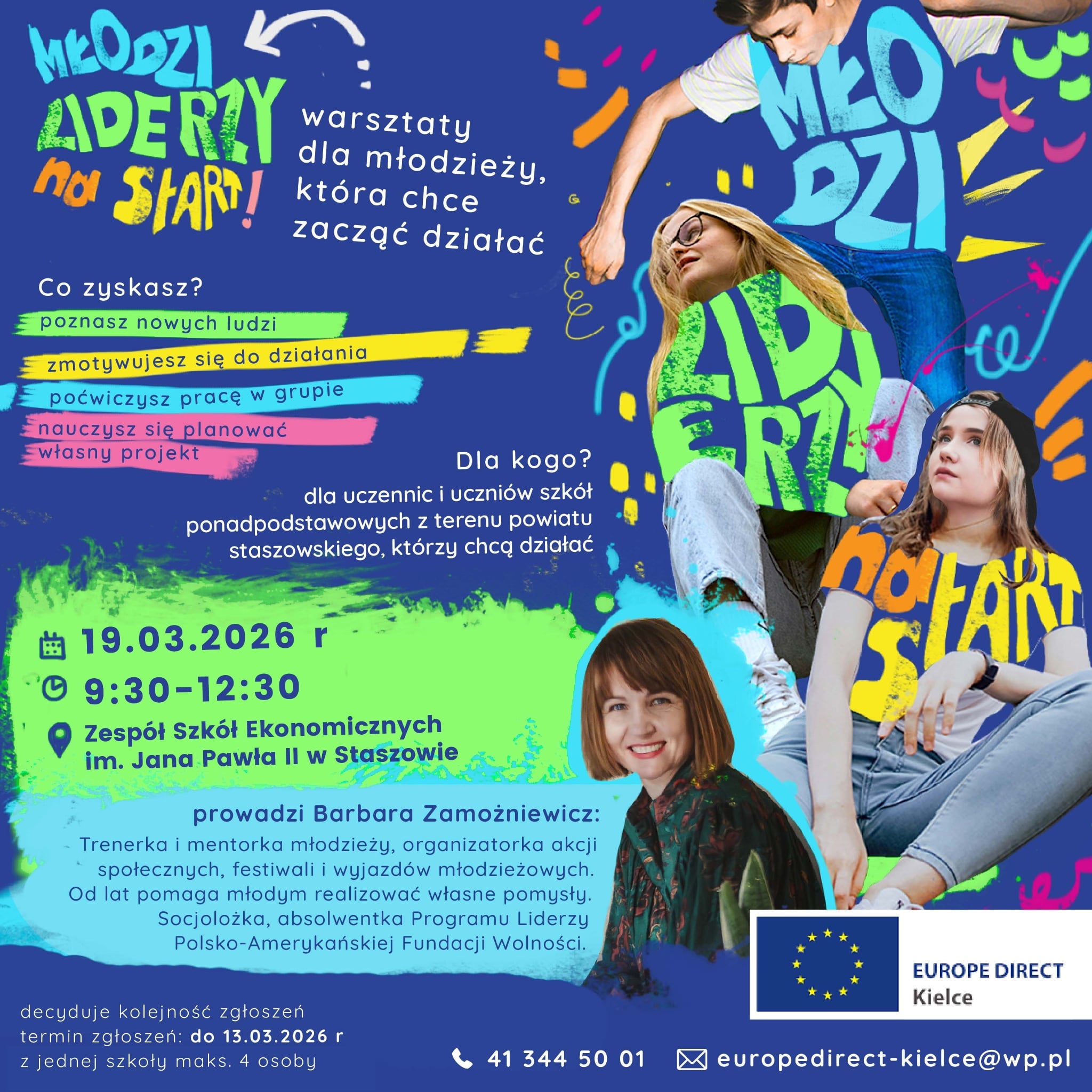 EUROPE DIRECT Kielce zaprasza uczennice i uczniów szkół ponadpodstawowych z terenu powiatu staszowskiego na bezpłatne warsztaty „Młodzi liderzy na start!”.